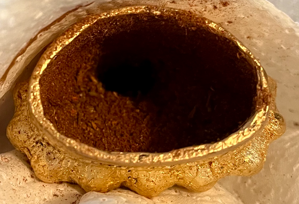 5.Painted the inside of the buddha & coated the paint with specially formulated incense and let dry.
