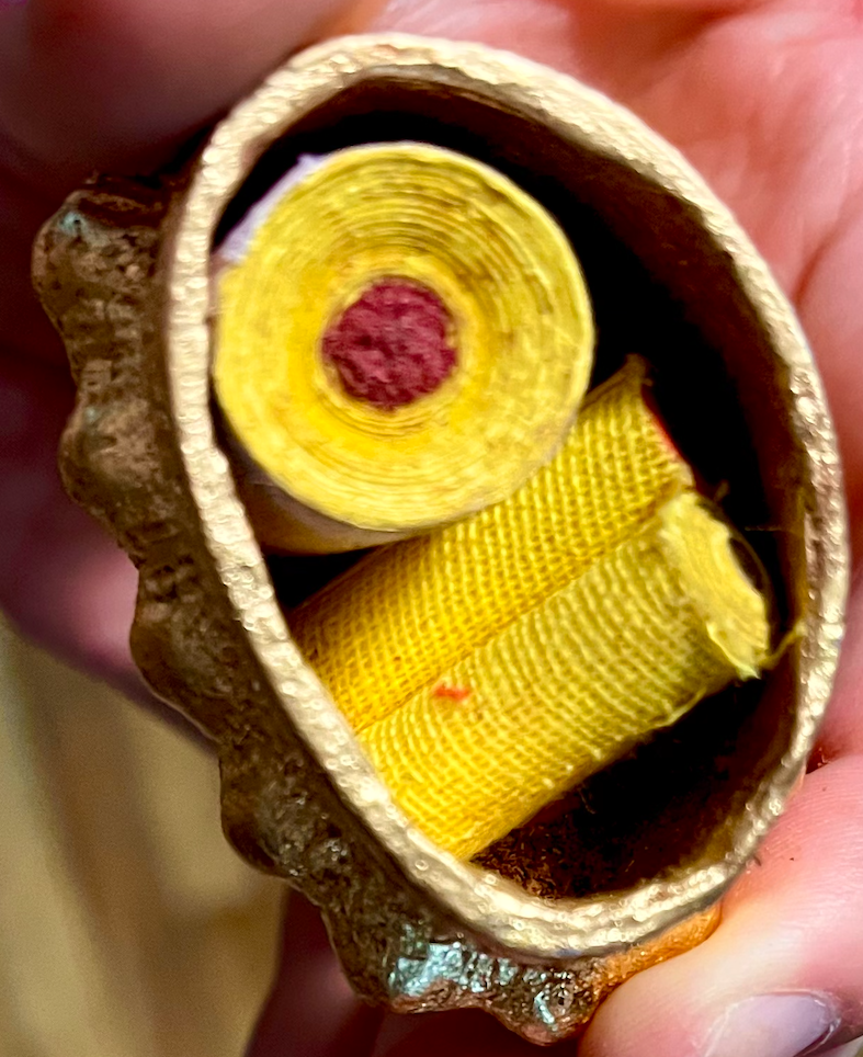 8. Inserted Tibetan Lama made natural remedy medicine pill (small blackish ball) and saffron.