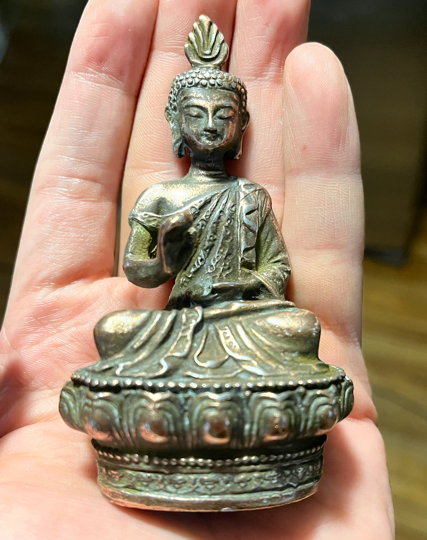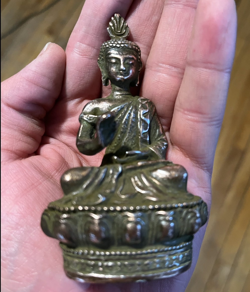 1. The Initial condition. 3.3”x2.3” Antique brass mix buddha (student found this one, it was made well so I proceeded.)